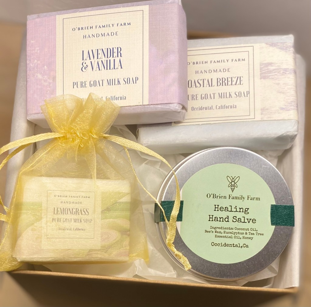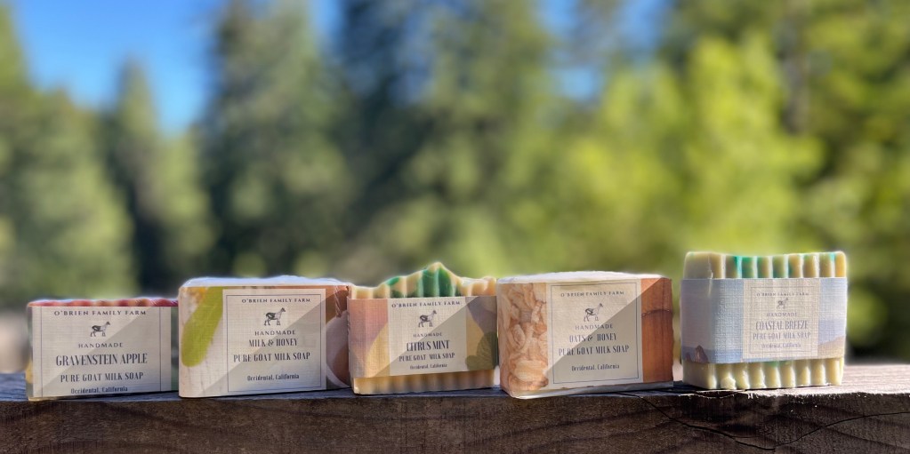 Please email all local orders to connect@ofamilyfarm.com. We forecast to have stock to fill all orders. (product availability per cold processing method of a 4-6 week curing time. ) You can visit the farm for all scheduled pick up and pay orders. We can hand deliver to you with in 20 miles of Occidental. All bars are $7 each and Buy 7 get one free.
